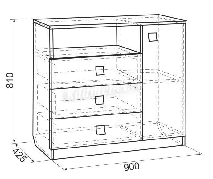 Состоит из: 3-х выдвижных ящиков и ниши с закрытой дверью