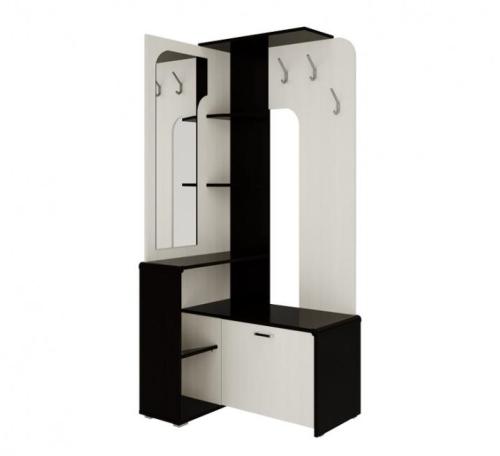 Компактная и достаточно вместительная прихожая с оригинальным угловым дизайном. В конструкции предусмотрено всё необходимое для хранения верхней одежды, обуви, аксессуаров.