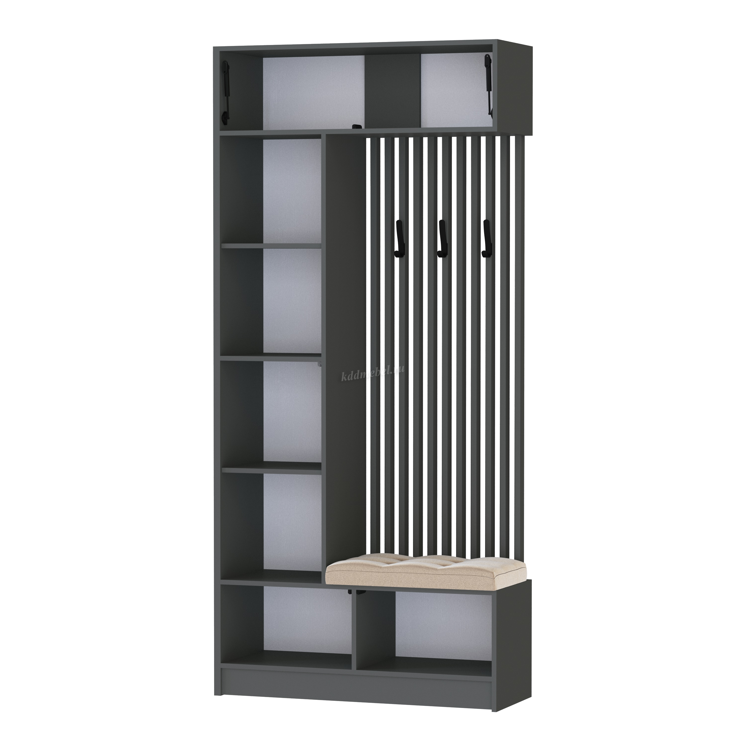 Ручки отсутствуют, крючки пластик, черные, покрытие soft-touch