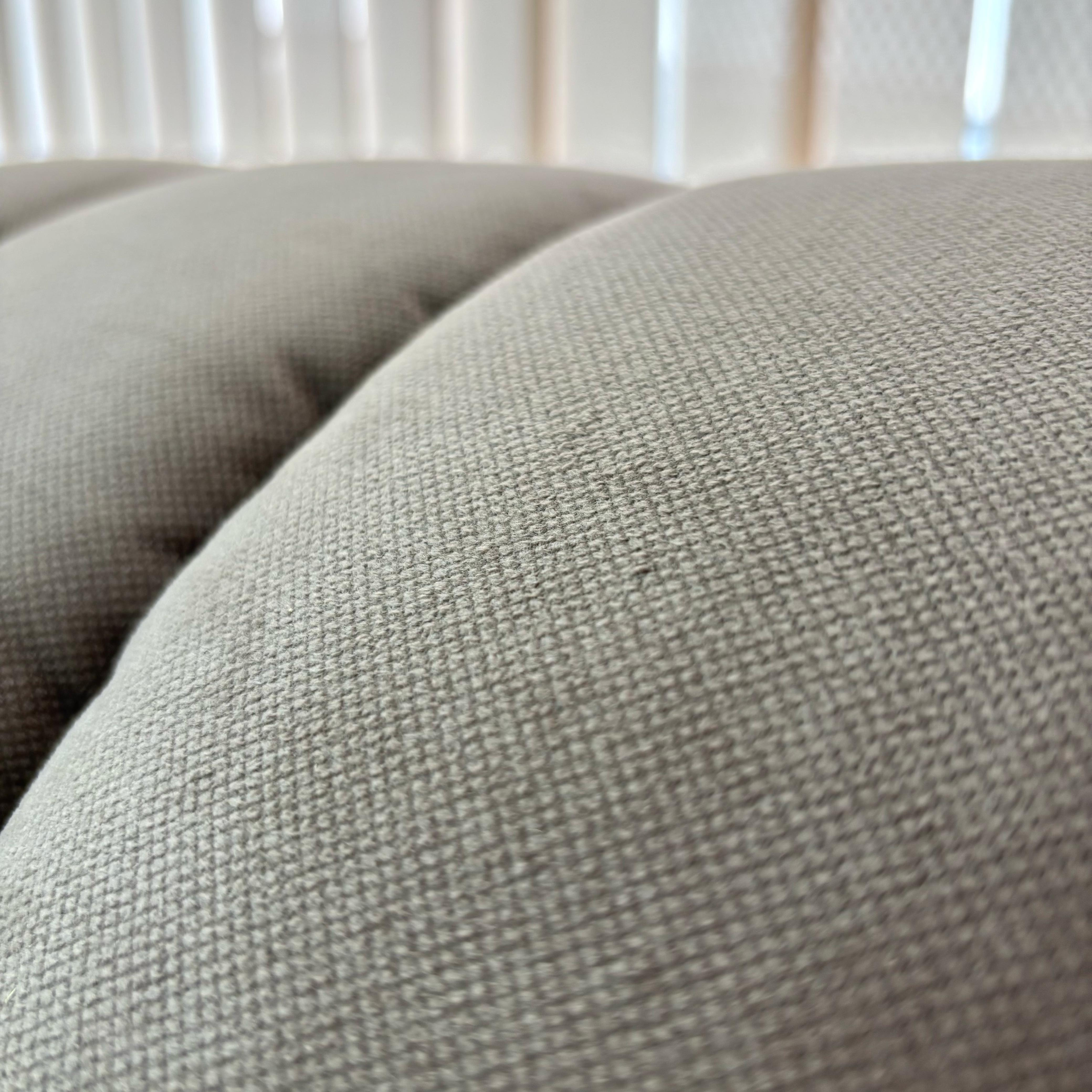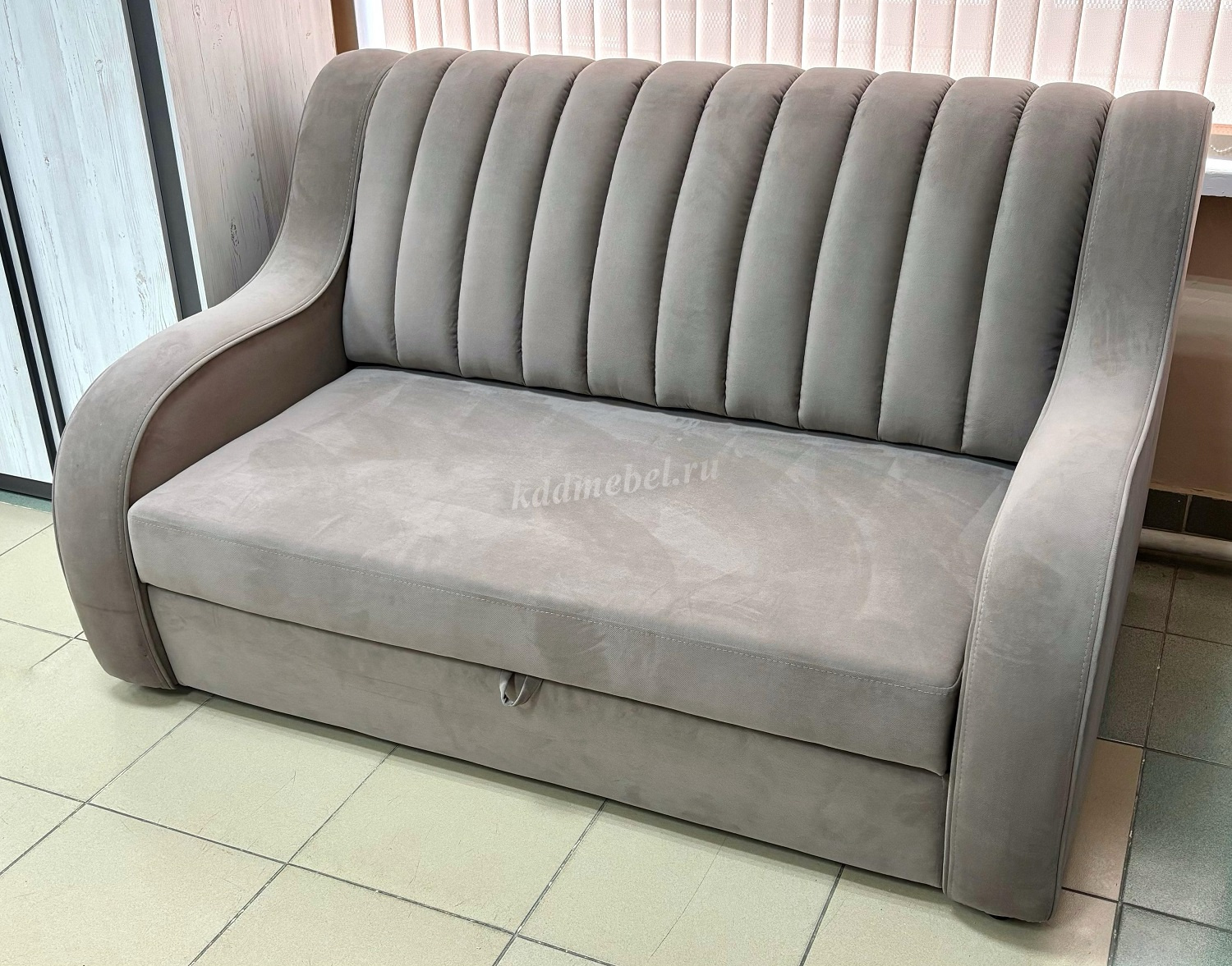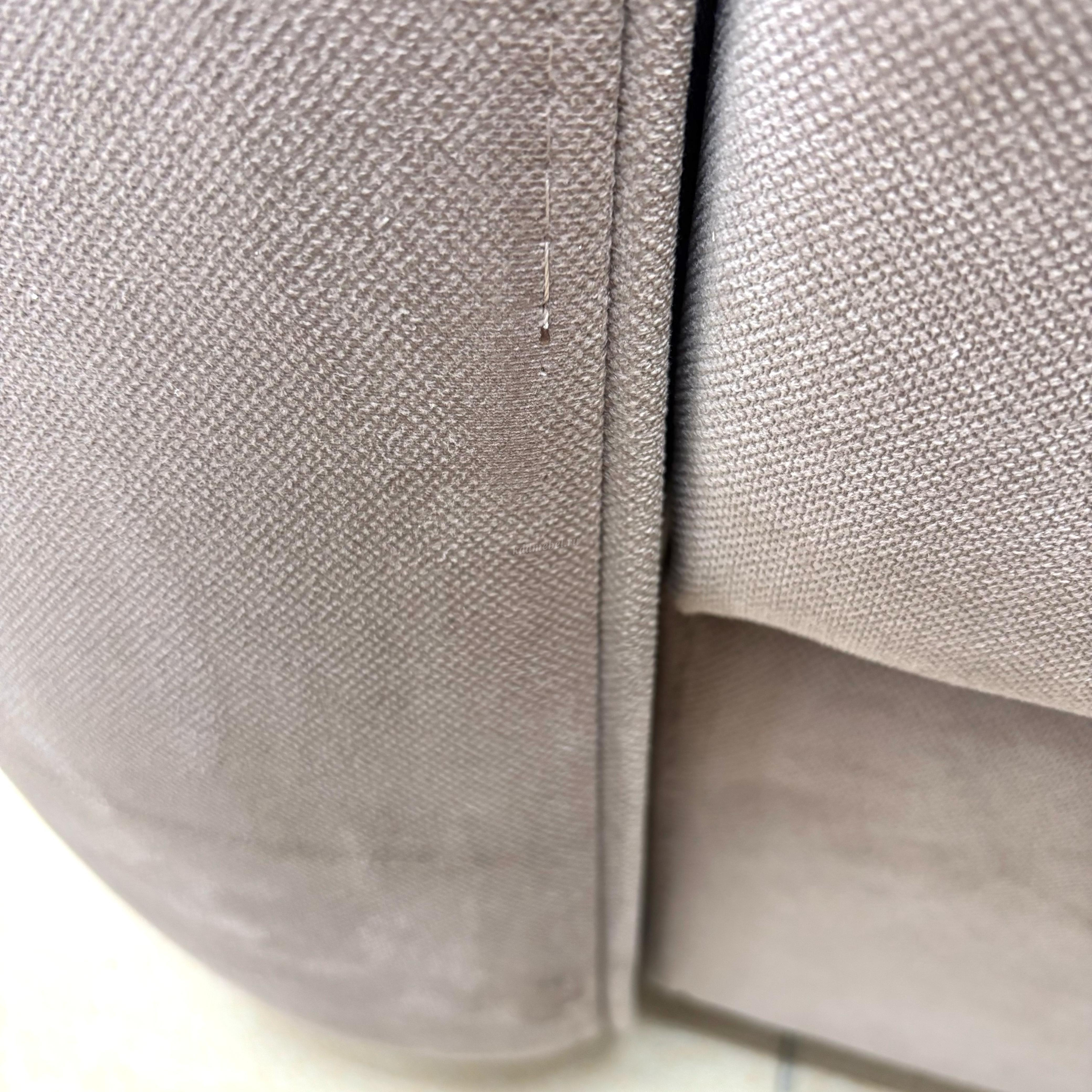 На спинке дивана есть небольшие затяжки ткани, на подлокотнике частично по шву нет ниток.