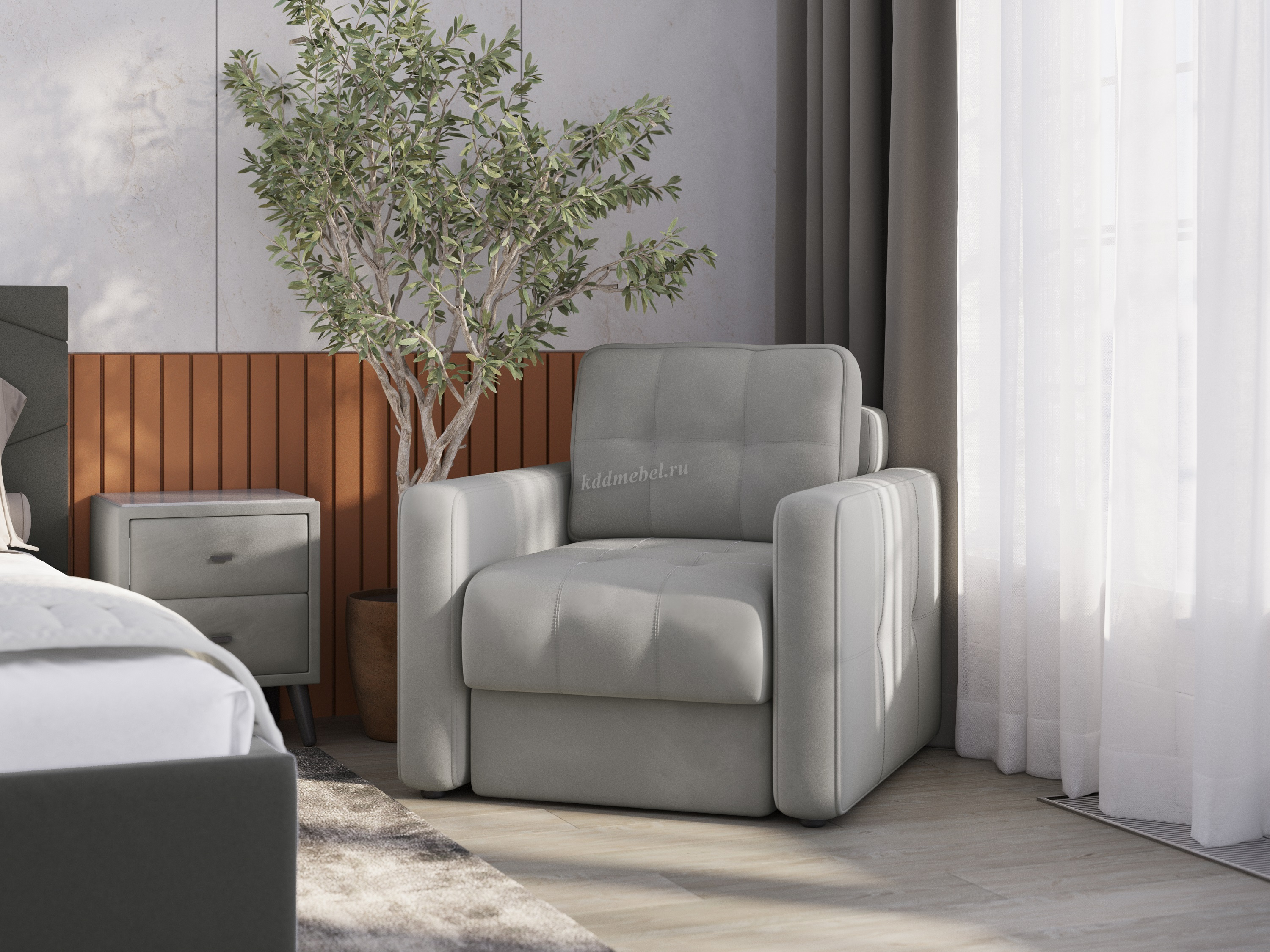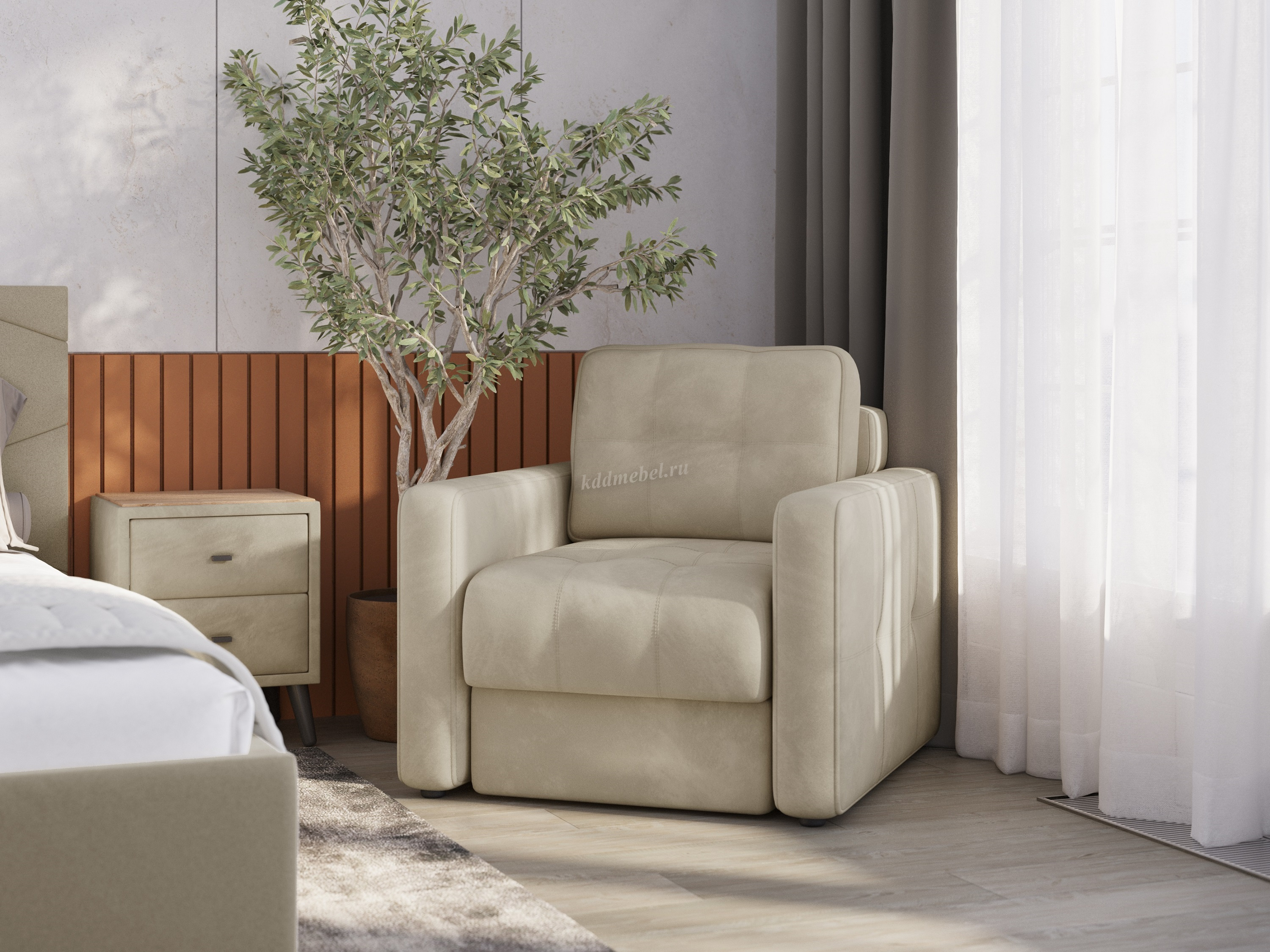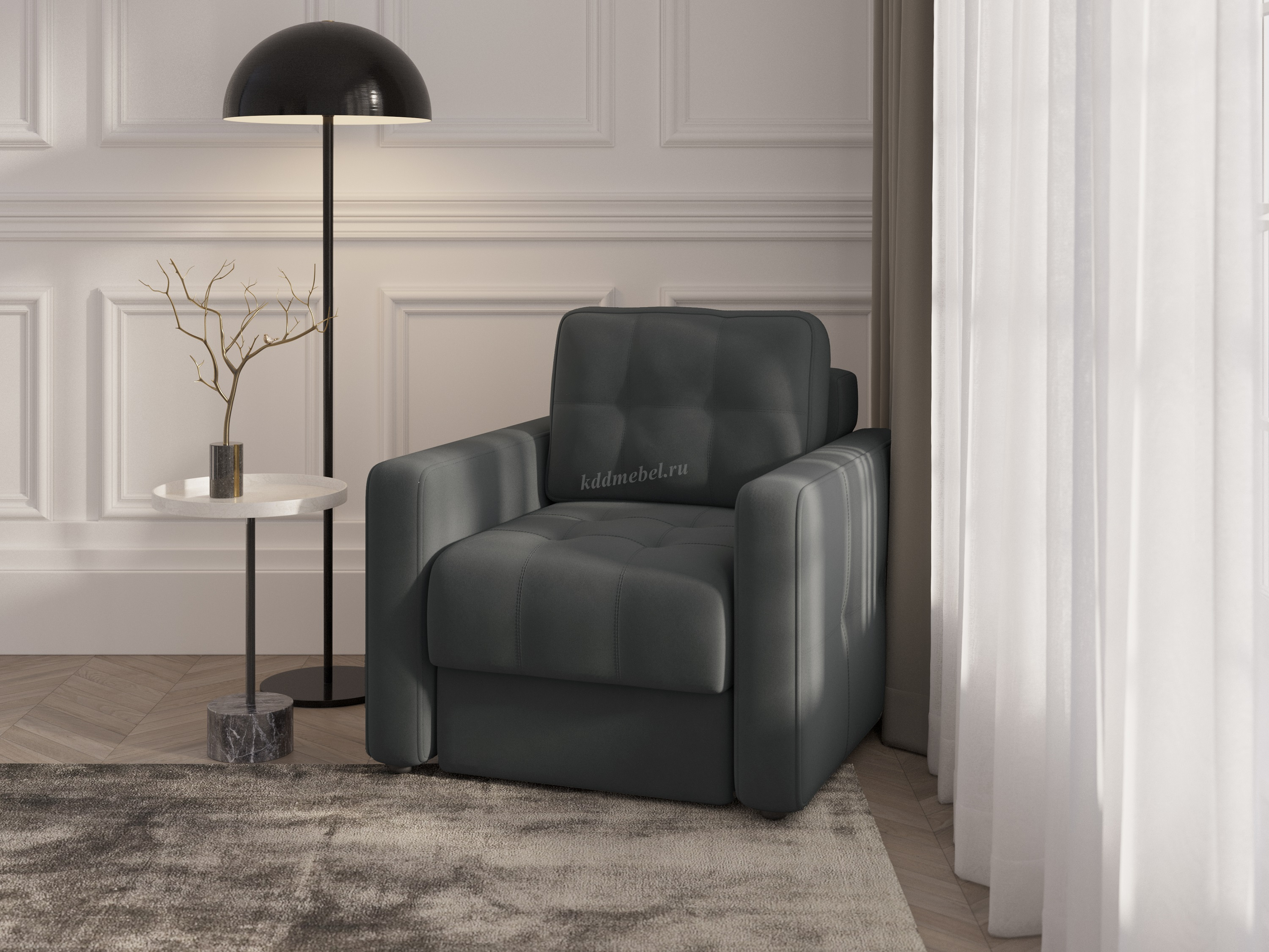 Подлокотники шириной 140 мм, обтянутые тканью и простеганные двойной отделочной декоративной строчкой.