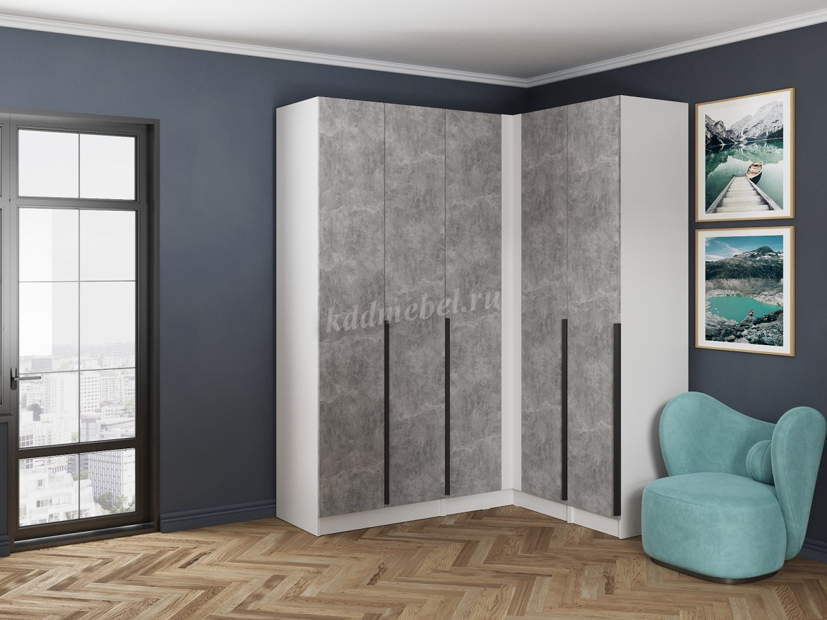 Шкаф угловой Мадрид прямой угол (Белый древесные поры/Ателье светлое) наличие товара: