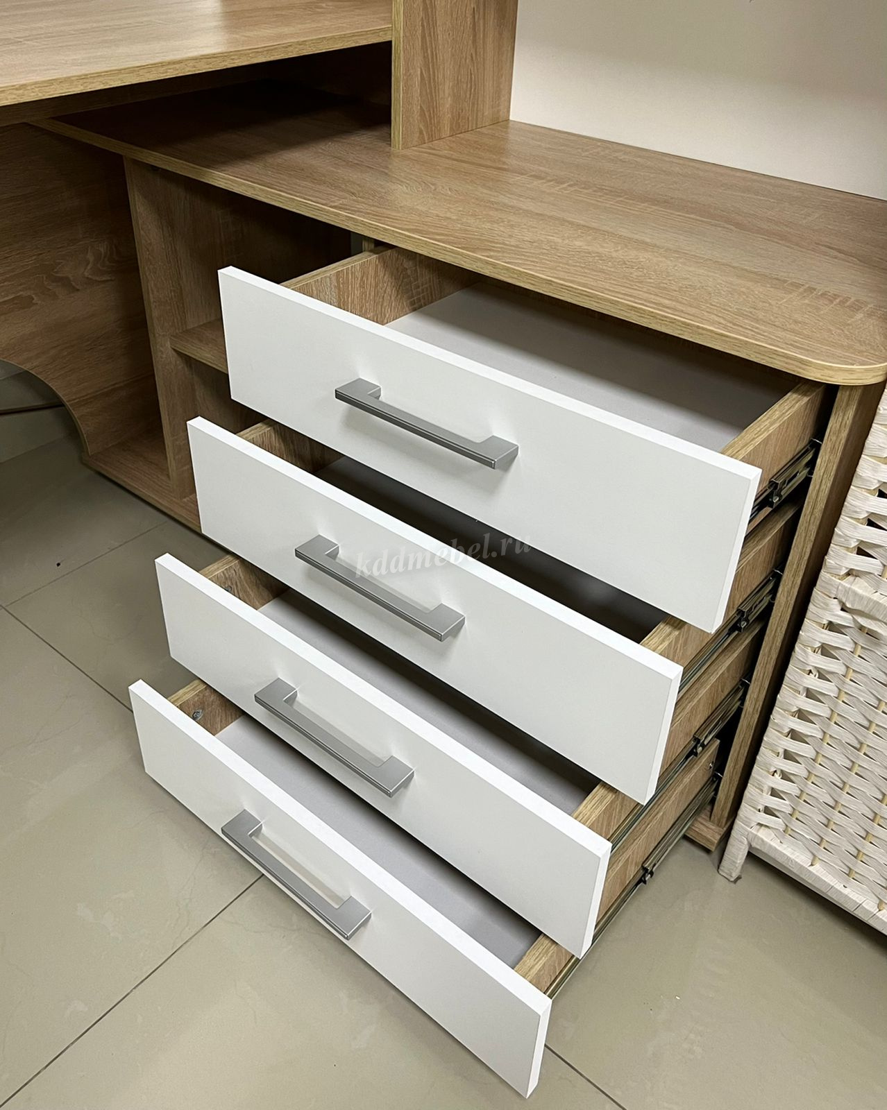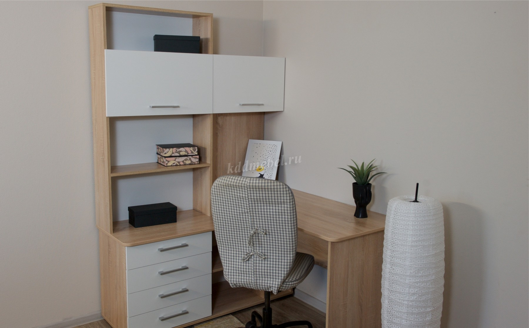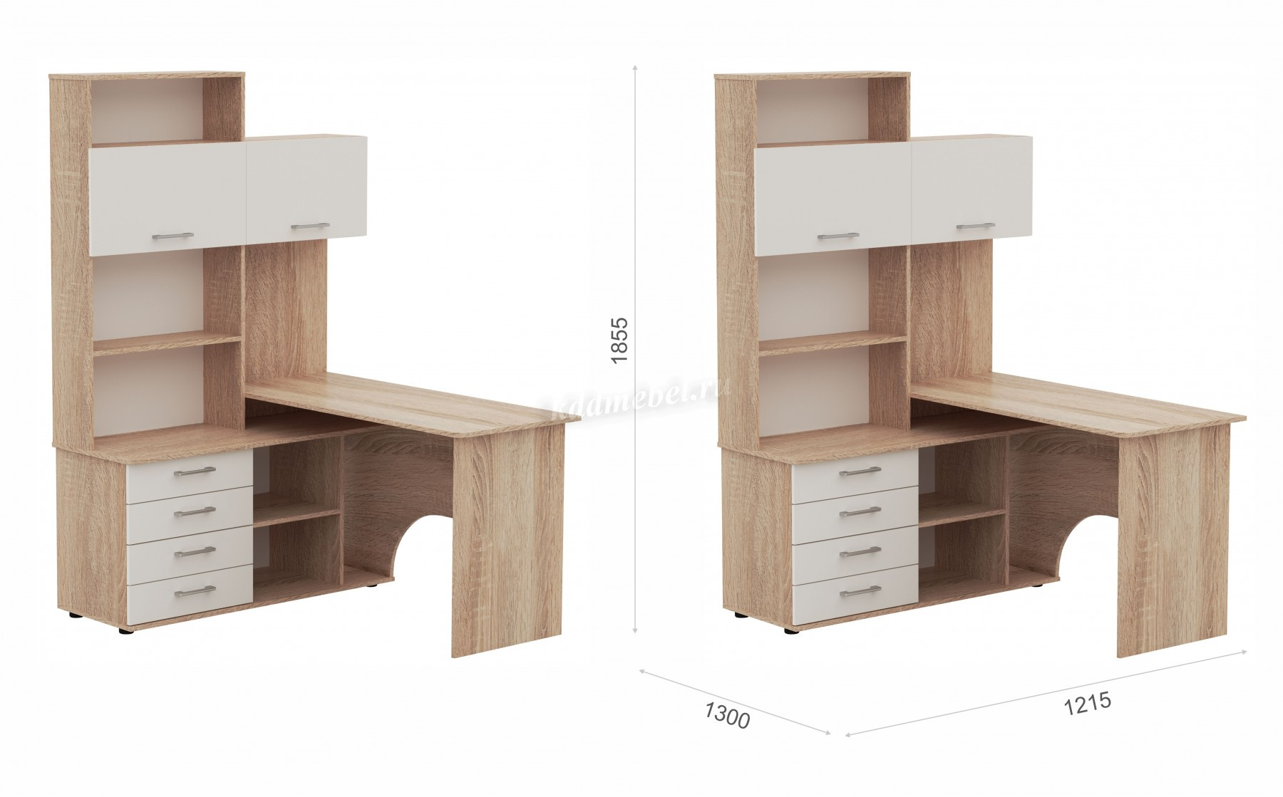 Стол письменный угловой – удобное рабочее место для студента, школьника, отличное решение для кабинета с интерьером в скандинавском стиле. На широкой столешнице легко поместится монитор, клавиатура и документы, на угловой части можно разместить оргтехнику. В столе выделено место для системного блока и для письменных принадлежностей. Его можно укомплектовать надставкой с множеством полок для папок, книг и декора. В столах системы Гарвард мягкие, удобные для опирающихся рук края, с кромкой в 2мм, а также, скруглённые углы столешницы. Корпус выполнен в теплом древесном цвете светлого дуба с приятной на ощупь фактурой, фасады - белые матовые. Нейтральные оттенки мебели позволяют легко вписаться уже в готовый интерьер.