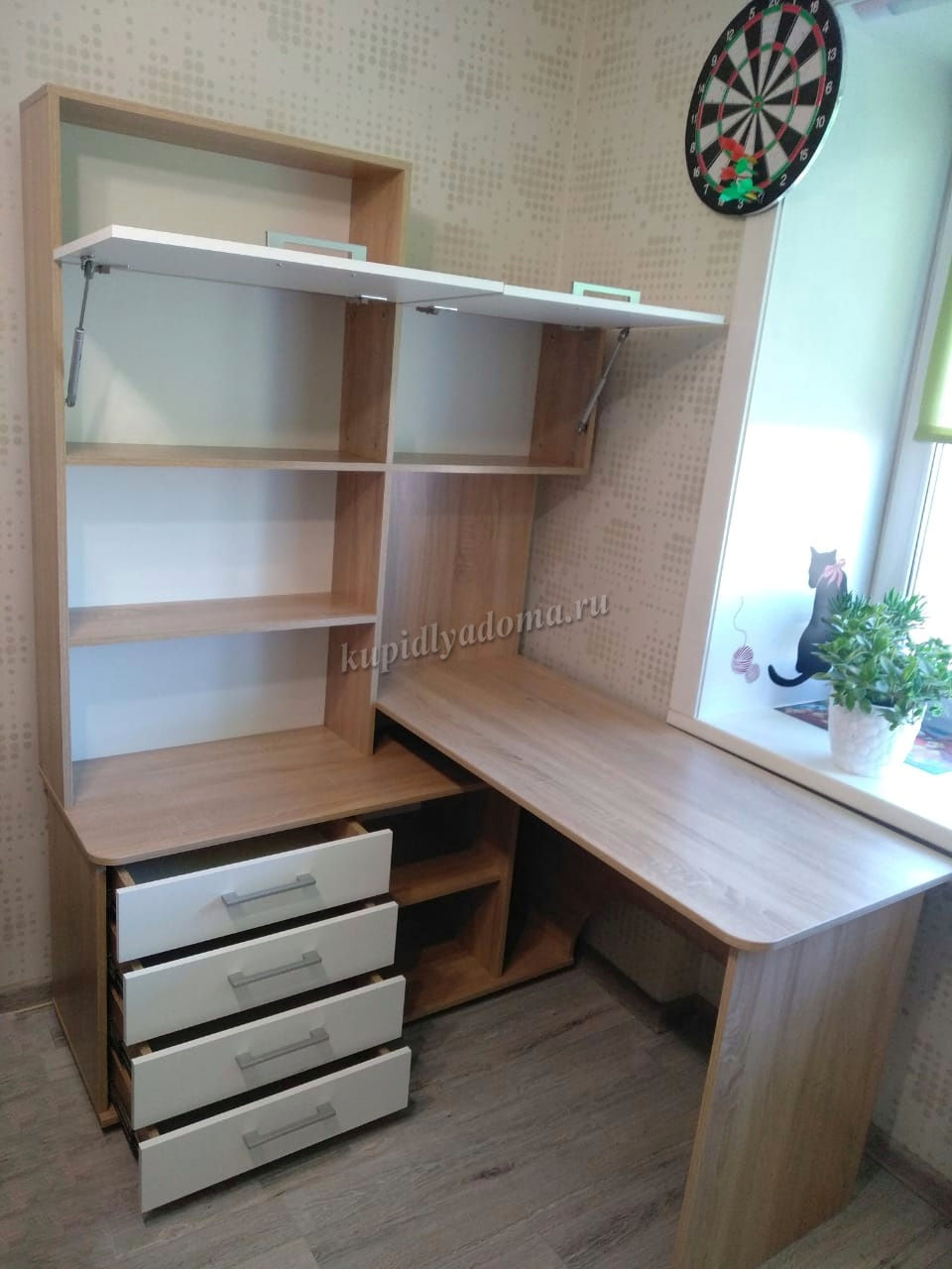 Здравствуйте! Купила 2 года назад у Вас два таких стола, левый и правый......столы симпатичные....проблема в другом.....как избавиться от запаха клея??? Когда открываешь ящики, оттуда сильный запах....от оргалита что-ли.....не знаю..... Уже в разные комнаты поставила, иначе невозможно в этой комнате находиться.....((((((