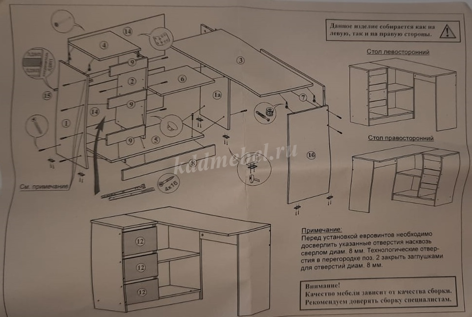 Материал задних стенок и дна ящиков: ЛДВП белый.